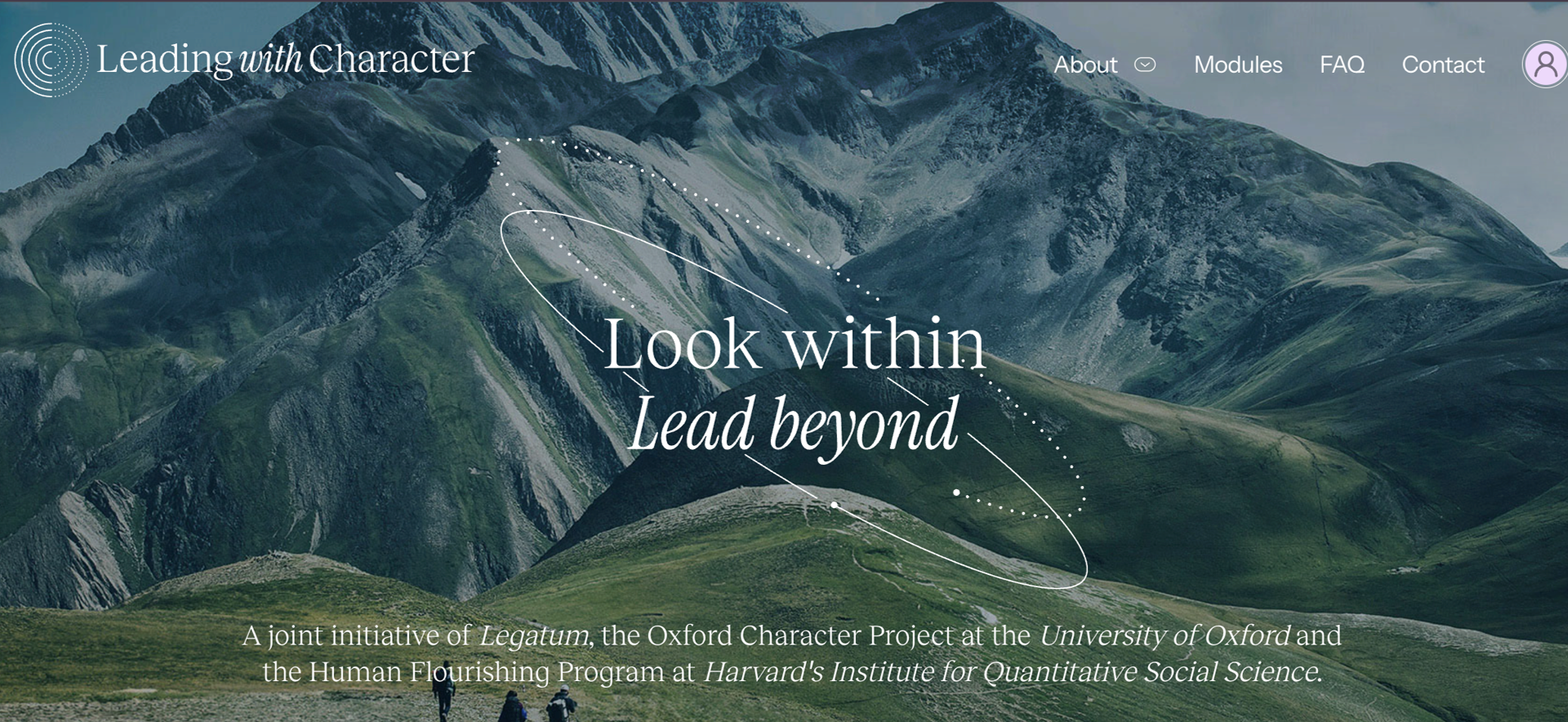 Leading and Flourishing in Difficult Times is a free of charge online course, A joint initiative of Legatum, the Oxford Character Project at the University of Oxford and